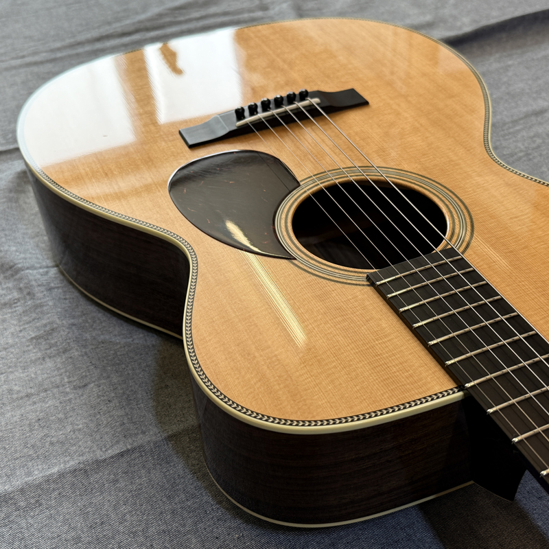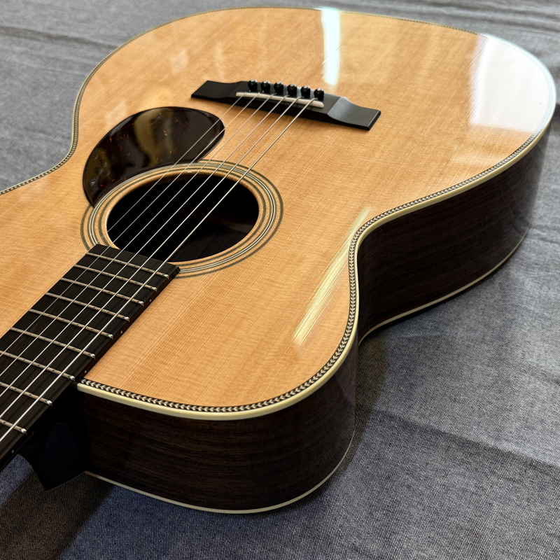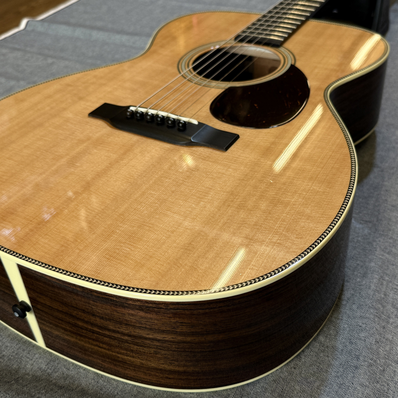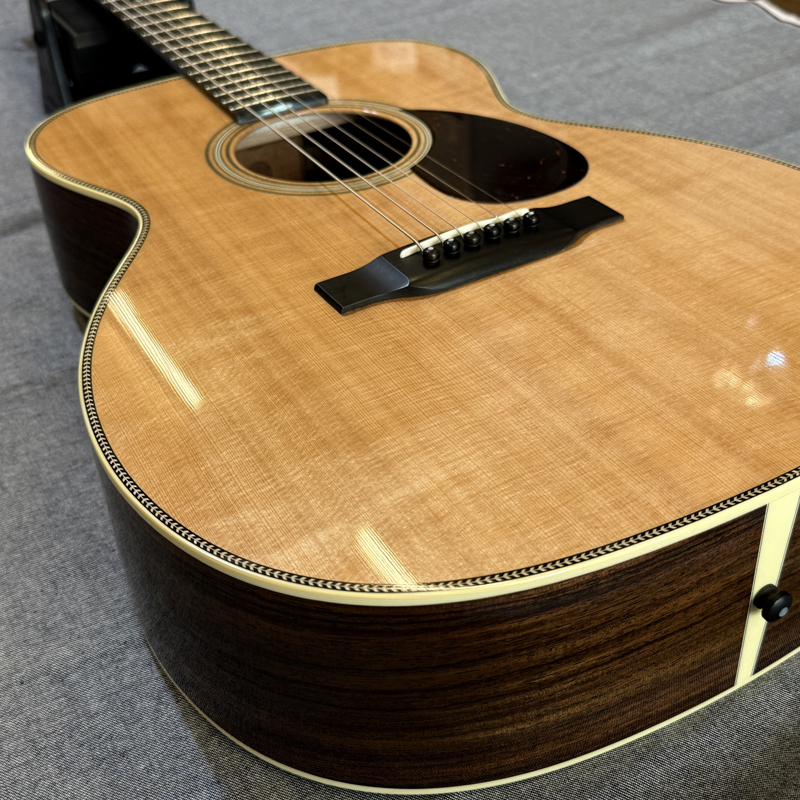 こちらはソロイストやフラットピッカーに多く愛用されているOMシリーズで、厳選されたスプルースとローズウッドを使用したモデル、「OM2H」の美品中古です。
