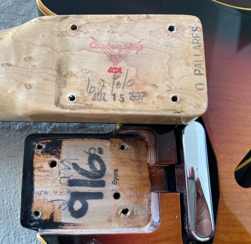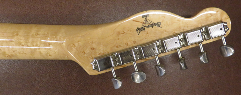 1997年製。現在非常に評価が高くなっているMaster Gradeシリーズが発売される以前のカスタムショップでRetrospective Series頃の製品です。ダブルバウンドアルダーボディ、スラブローズウッド指板のカスタムテレキャスター。ネックには美しいバーズアイメイプル、色の黒いローズウッド指板を採用しており非常に高級感のある印象です。シリアルナンバーは"CN702xxx"。ネックデートは1997年を表しています。ピックアップはスタッガードポールピースのブリッジポジションで元気の良いファットなサウンドが特徴。ナット幅は約41.5ミリ、レギュラーのネックグリップです。