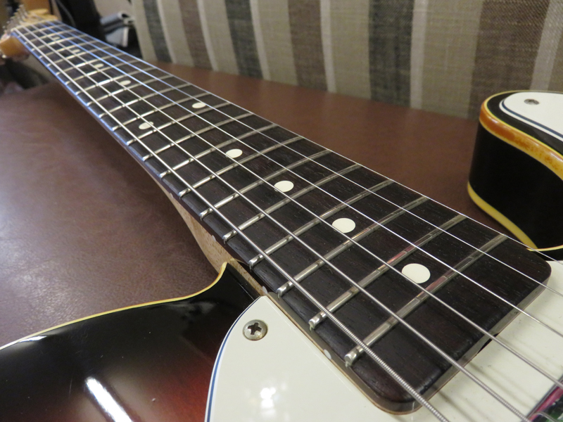 現在ネックはほぼストレート、トラスロッドは両方向に動作確認済。フレットは約75-80%位の残りです。