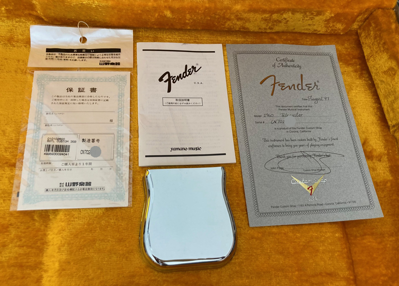 使用弦:010-046。オリジナルのBrown Tolex Case , Custom Shop 認定書と当時の輸入元保証書が付属しています。