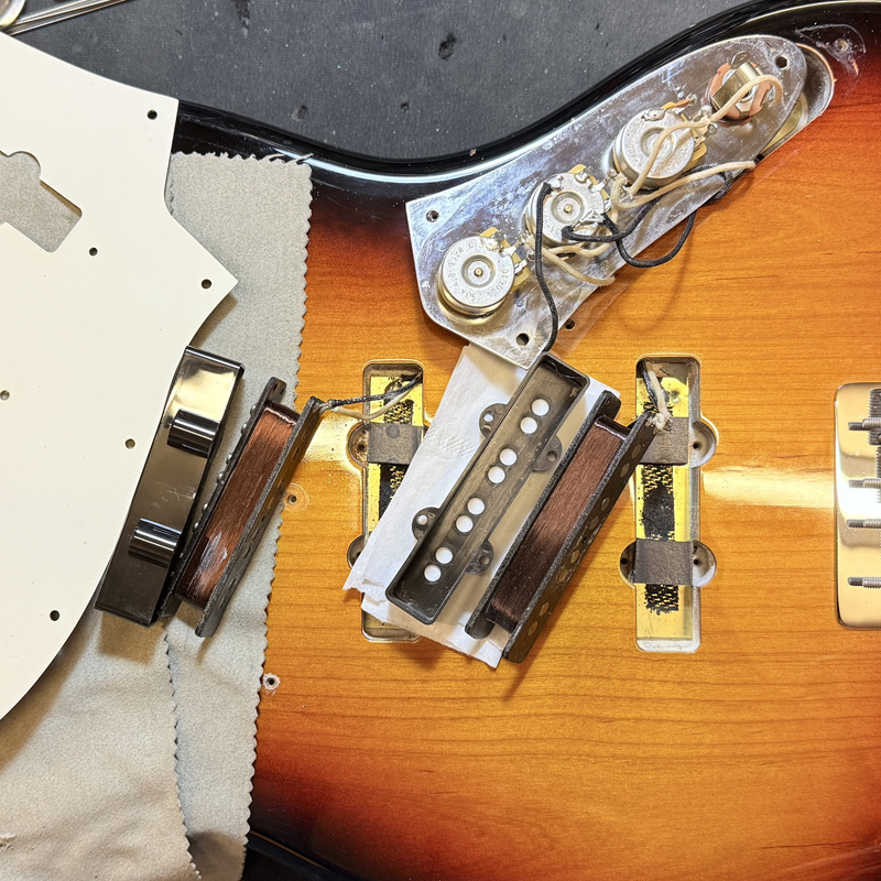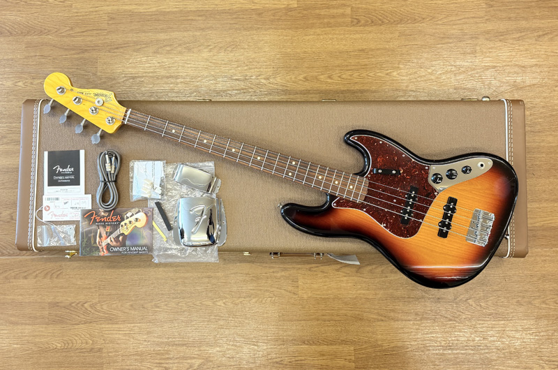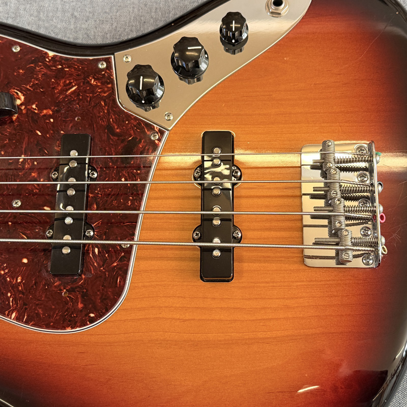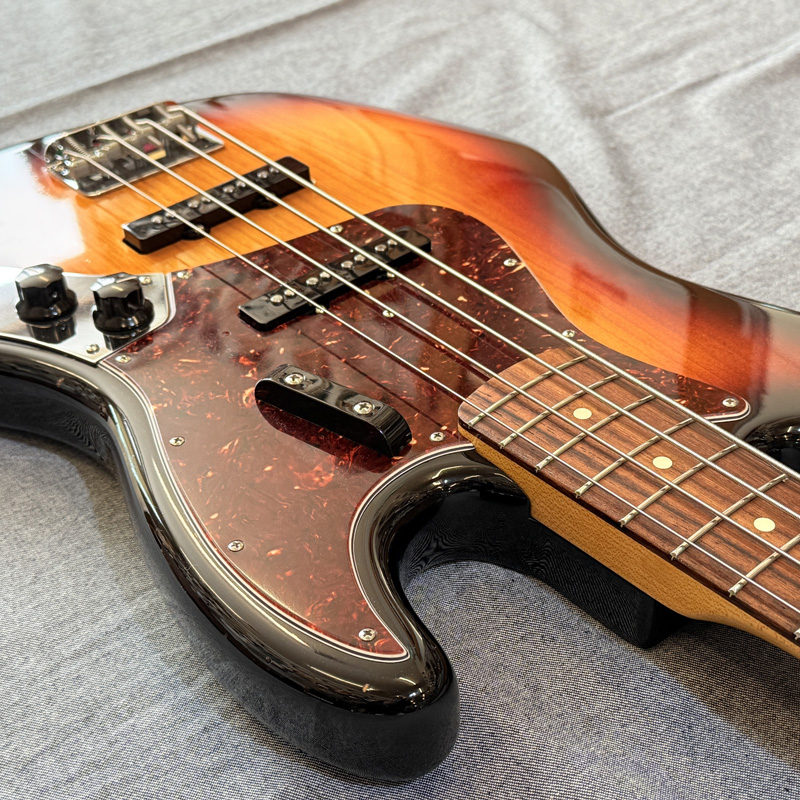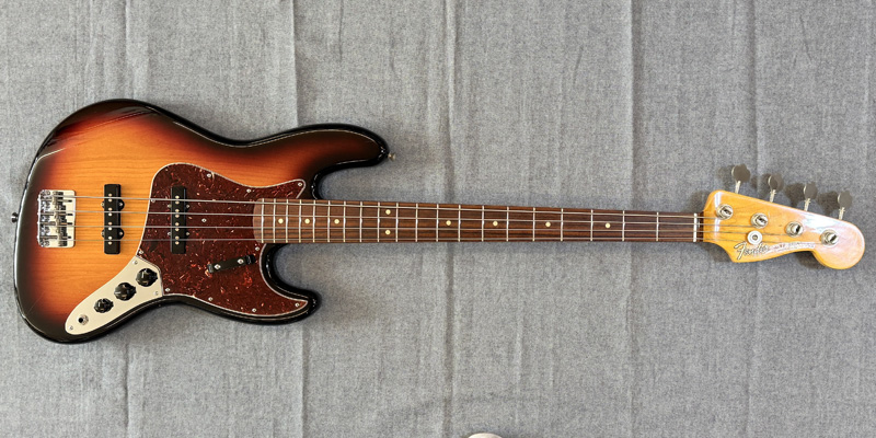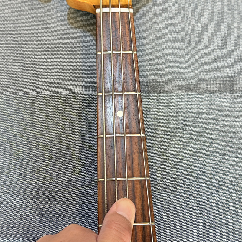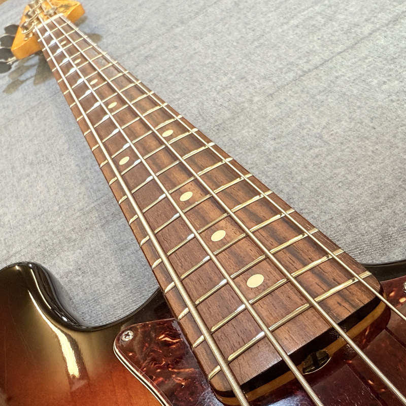 アルダーボディ、スラブローズウッド指板の60年代ジャズベースの復刻版。