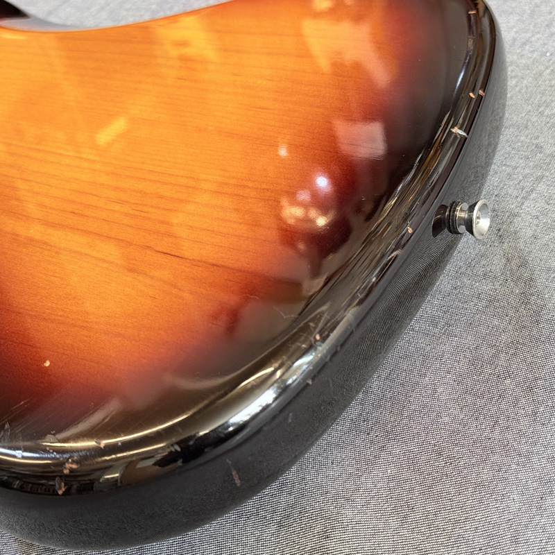 ボディとピックガードに複数の打痕やすり傷、使用の跡やダメージがありますが、