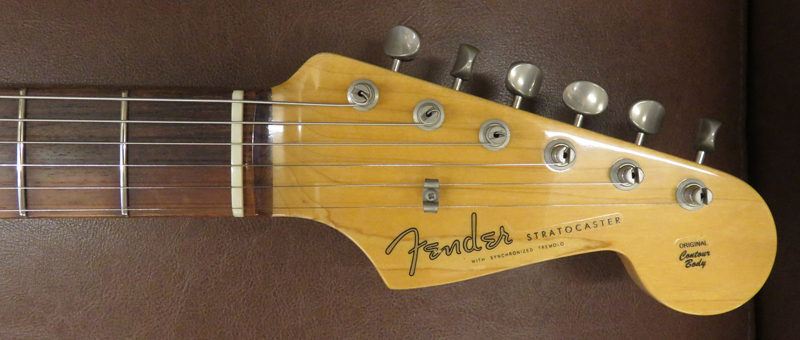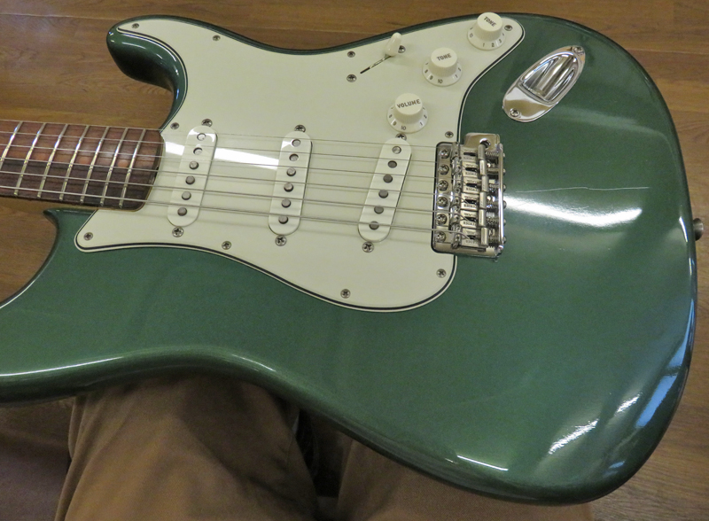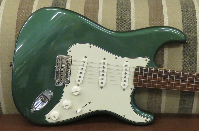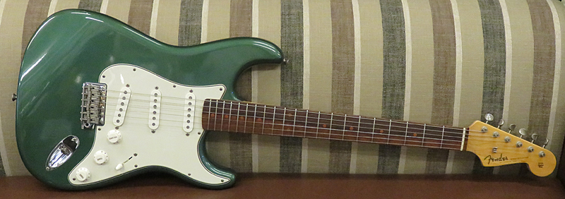 こちらは1959年頃のスラブ貼りローズウッド指板のストラトキャスターの復刻版。アルダーボディ、7.25"Rスラブローズウッド指板メイプルネック。ピックアップは59Stratocaster用に開発されたシングルコイルが3基搭載されており、ファットでレンジの広い当時のキャラクターを絶妙に再現しております。ネックも当時のグリップを再現しておりやや薄目の"C"シェイプ。カラーは落ち着きのあるグリーンメタリックの"