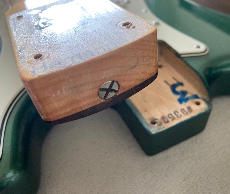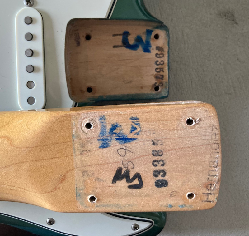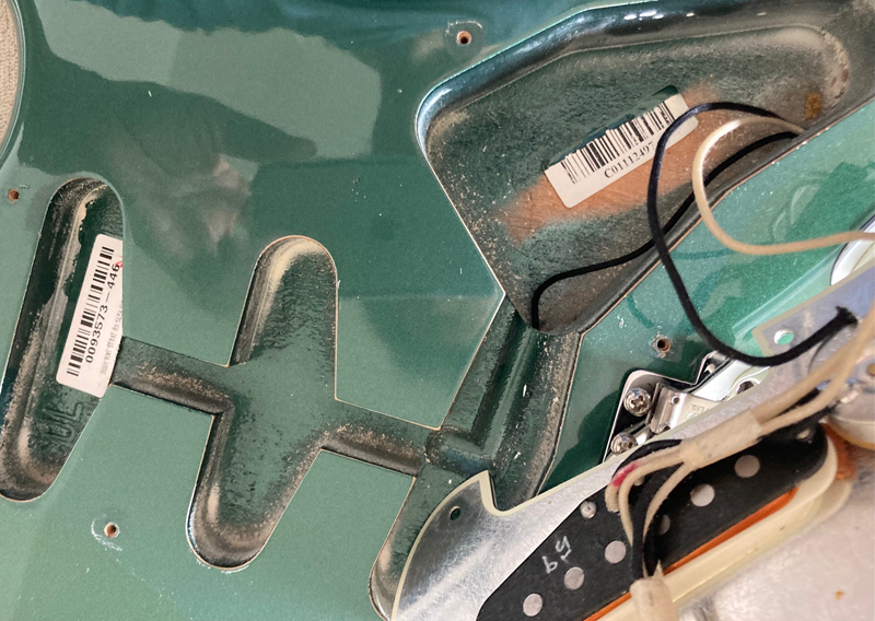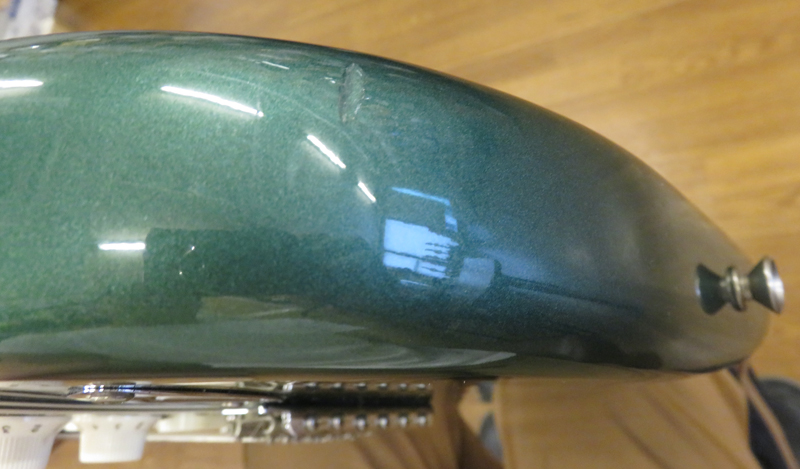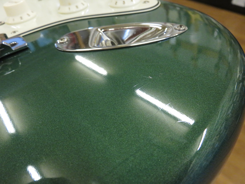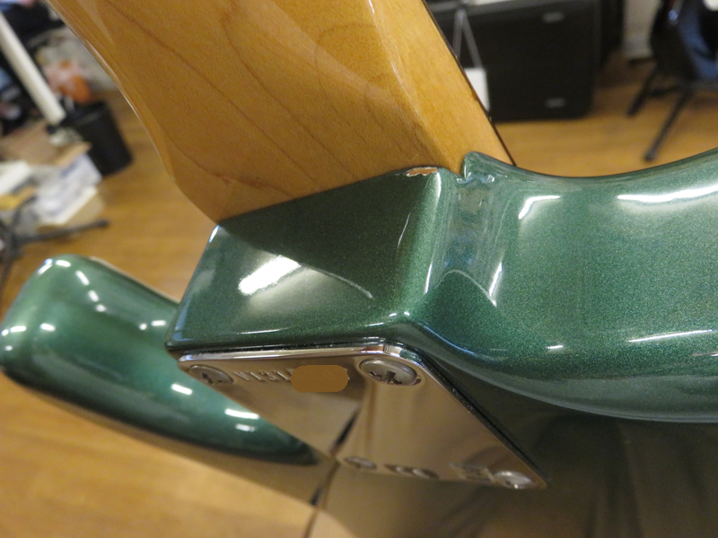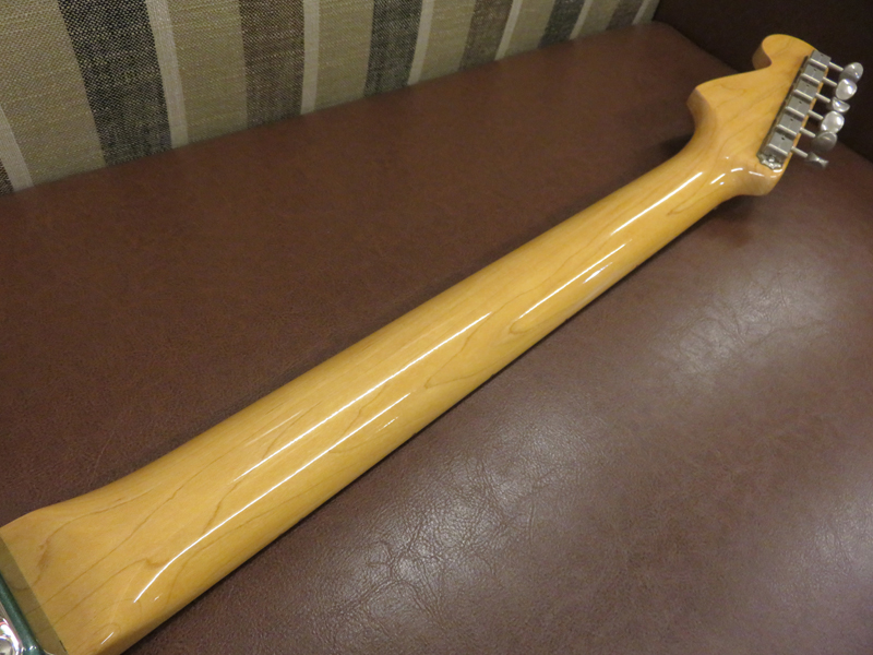 外見的にはネックポケット周辺に塗装の剥がれたキズ、塗装のウェザーチェック、ウチキズなどあります。その他全体的にはそこそこキレイな状態だと思います。