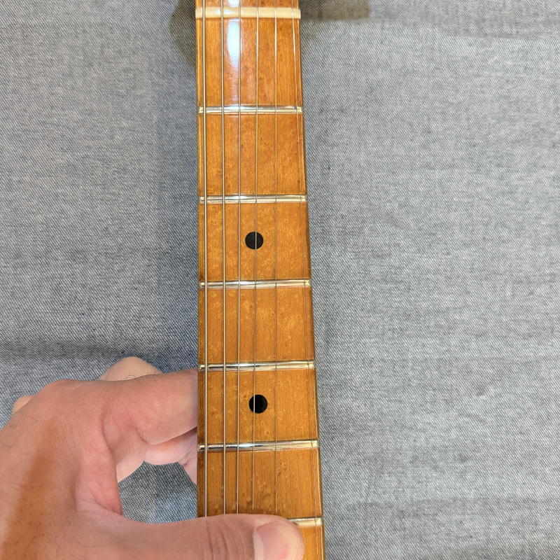 指版面はリフレットの際に再塗装されており、フレットの減りは10%程度。