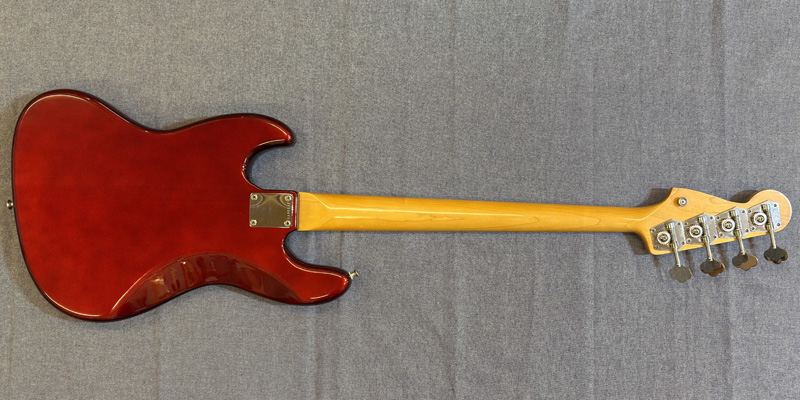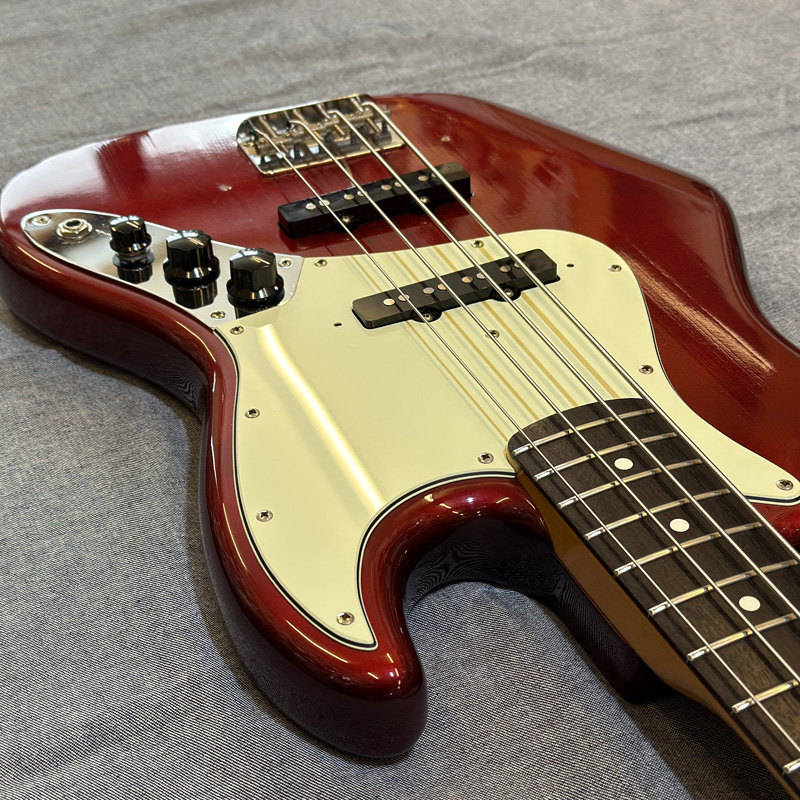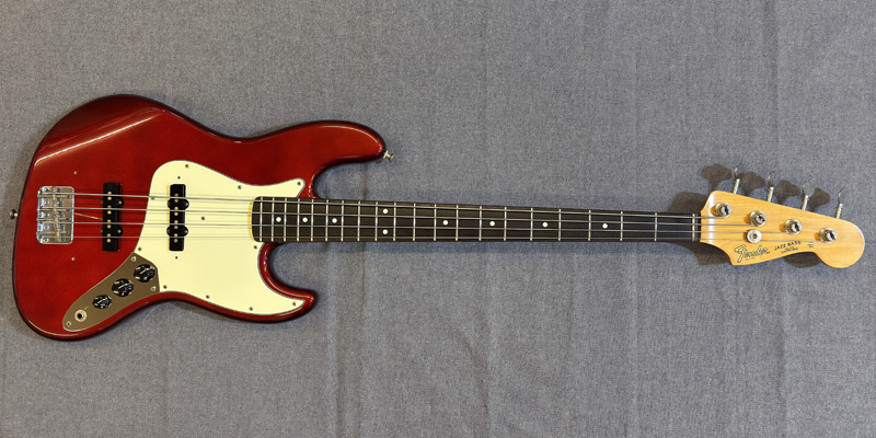 アルダーボディ、スラブローズウッド指板、ドットポジションのジャズベースを復刻したモデル。