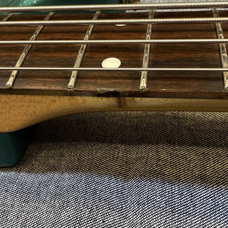 ネック11フレットから12フレットの1弦側サイド部分に深めの打痕がありますが、表面の修正を行っており、へこみや引っ掛かりのない状態になっています。