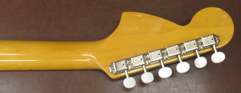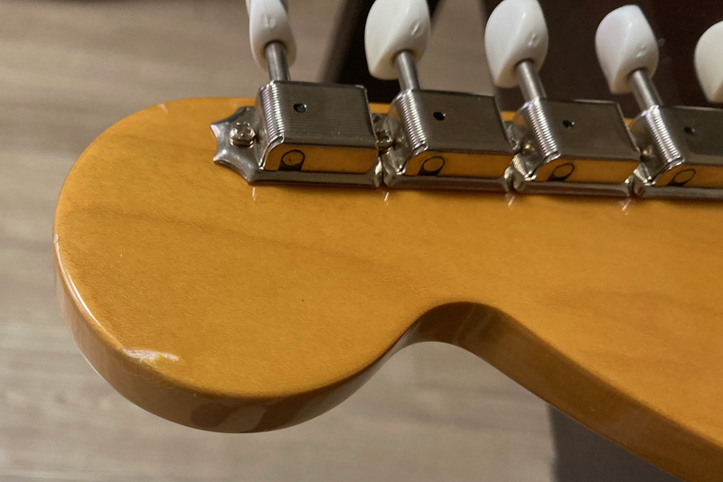 外見的にはヘッドストックの先端に塗装の剥がれたキズ、細かなウチキズ、スリキズなどありますが全体的にはそこそこキレイな状態を保っています。