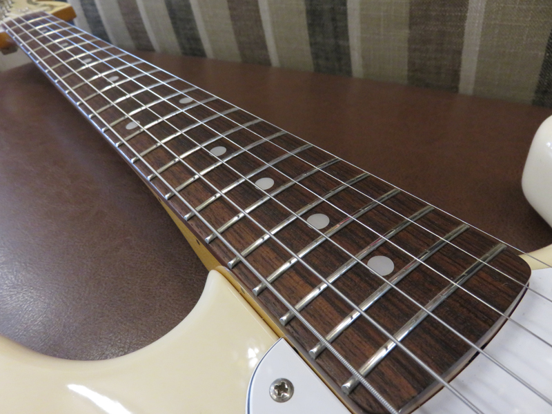 現在ネックはほぼストレート。トラスロッドはほとんど締めつけていません。フレットは減っているところで約70-75%位の残りです。使用弦:010-046。