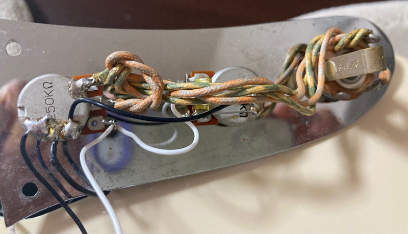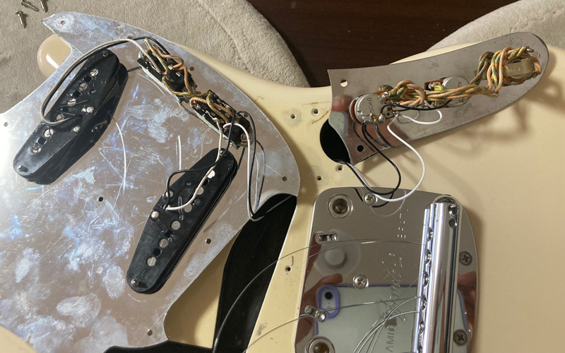 修理歴はJack 、配線材交換。キャビティシールド処理。ピックガード裏シールドとノイズ対策が施されています。