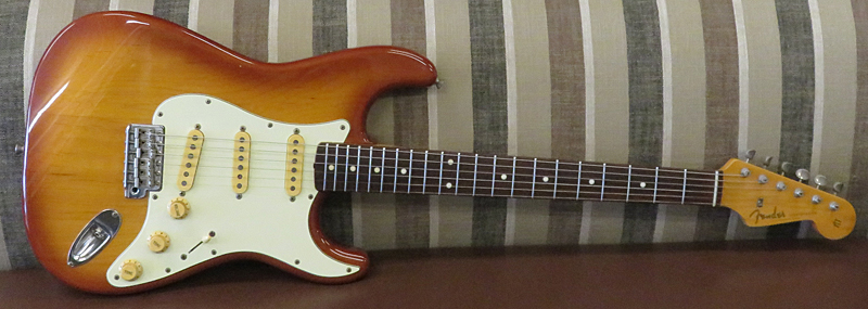 ファットなシングルコイルサウンドが特徴でブルースなどの演奏にはピッタリはまり、弾いていて楽しいギターです。ナット幅は約42ミリ、やや薄めのネックグリップです。