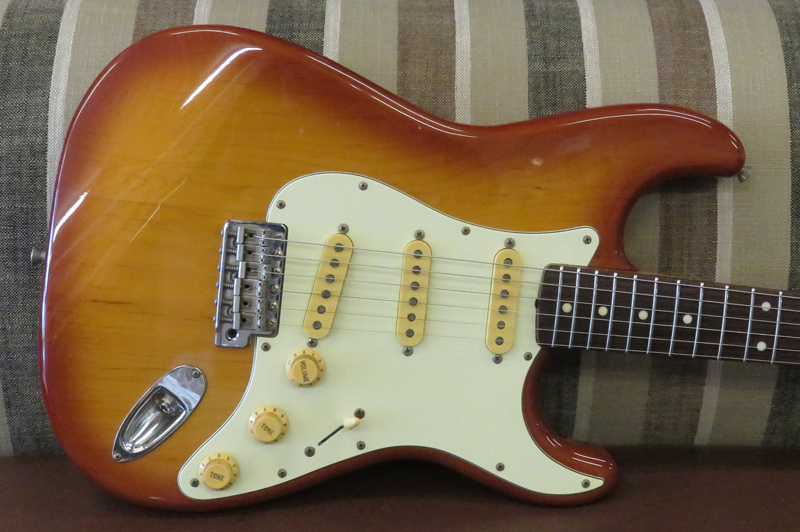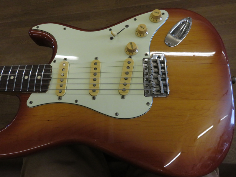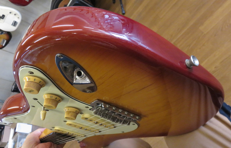 Way Switch , Volume , Neck Tone , Middle Tone。フィニッシュはCherry Burstで赤色が退色して薄いオレンジ色のような微妙な色合いになっています。