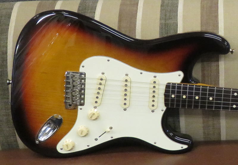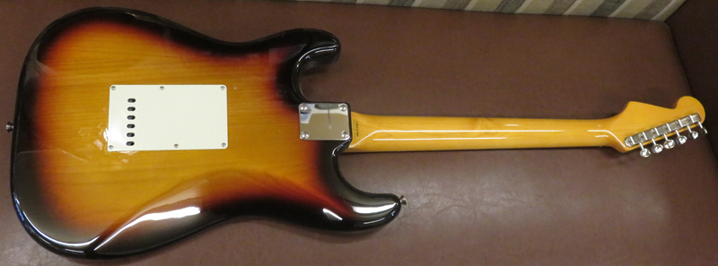 2006-2008年製。Crafted in Japan "S"シリアル期。アルダーボディ、Texas Specialピックアップ搭載。ファットなシングルコイルサウンドが特徴でブルースなどの演奏にはピッタリはまり、弾いていて楽しいギターです。ナット幅は約42ミリ、レギュラーのネックグリップ。指板のローズウッドが真っ黒でビンテージ感を醸し出しております。オススメの1本。