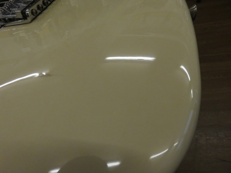 外見的には塗装の色焼け、年式相応のウチキズ、スリキズなどありますが、年式を考慮するとそこそこキレイな状態を保っていると思います。ローズウッド指板ですがネック裏にスカンクストライプがあります。スカンク部に少し塗装の引きが見られますがトラスロッドの効き方に問題などはありません。現在ネックはほぼストレート、トラスロッドは両方向に動作確認済、フレットは約75-80%位の残りです。