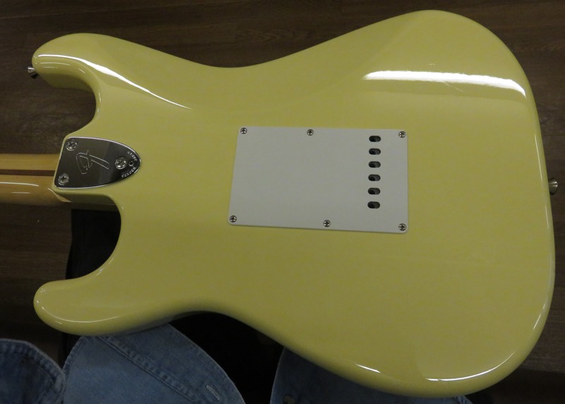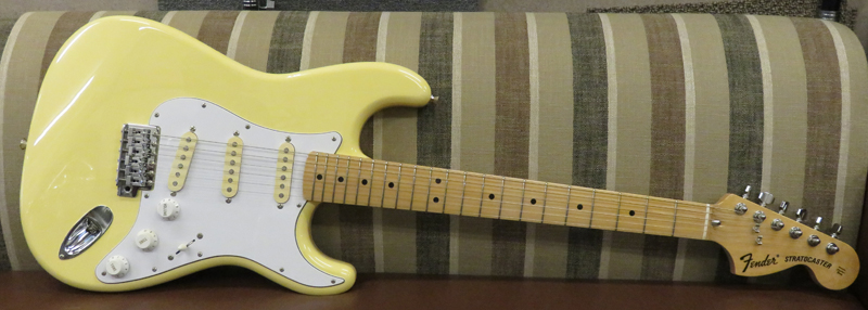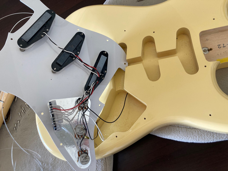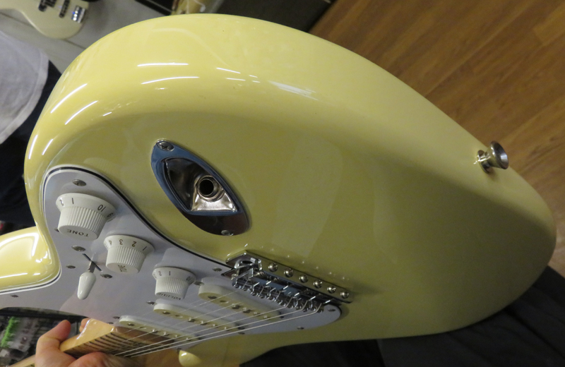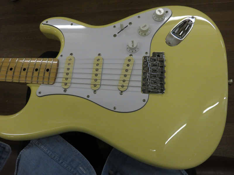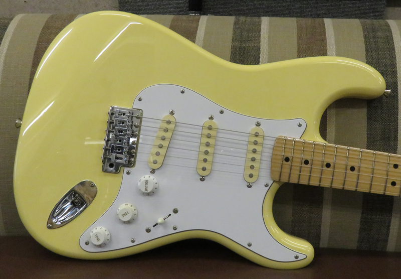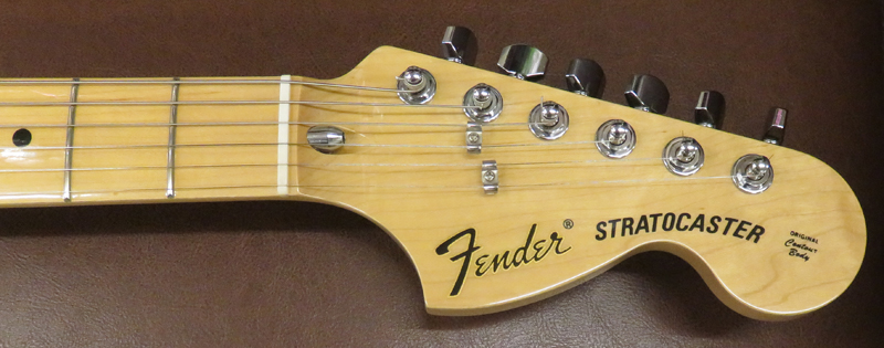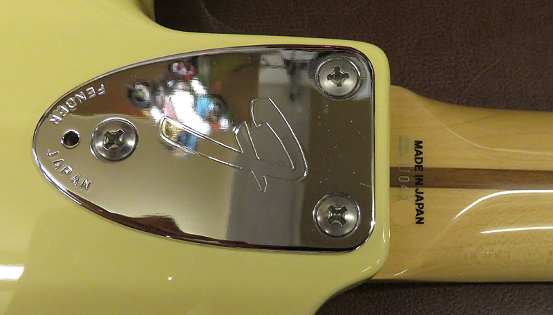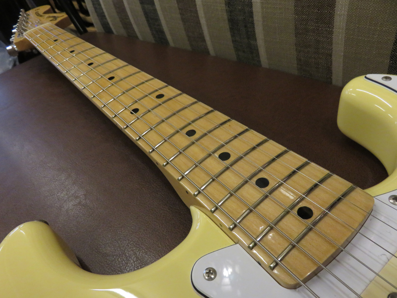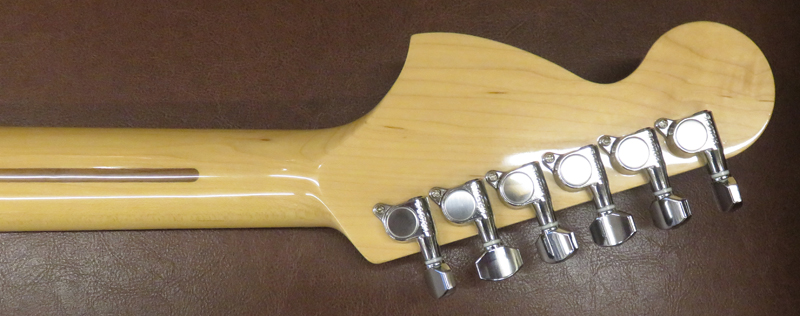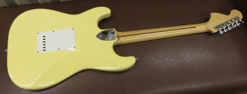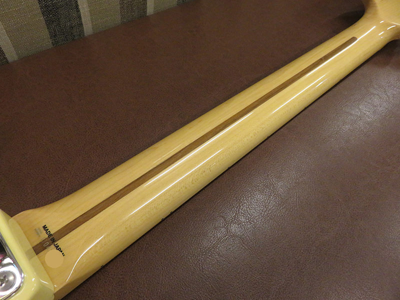 バスウッドボディ、メイプル1ピースネック、ラージヘッドストック。ピックアップはオリジナルの国産シングルコイルが3基搭載されています。コントロールは