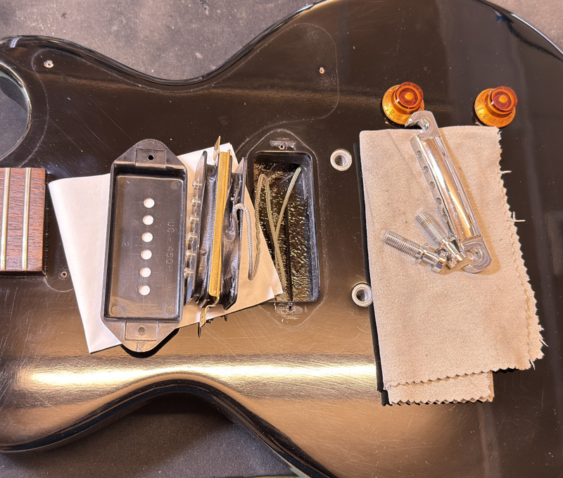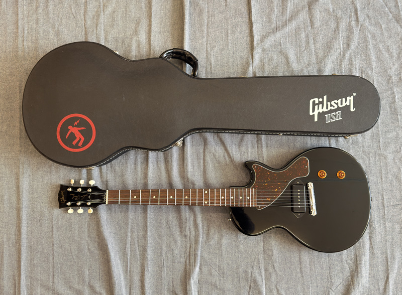 装飾を削ぎ落としたレスポール・ジュニアに、ステージで求められる実用性を加えた一本です