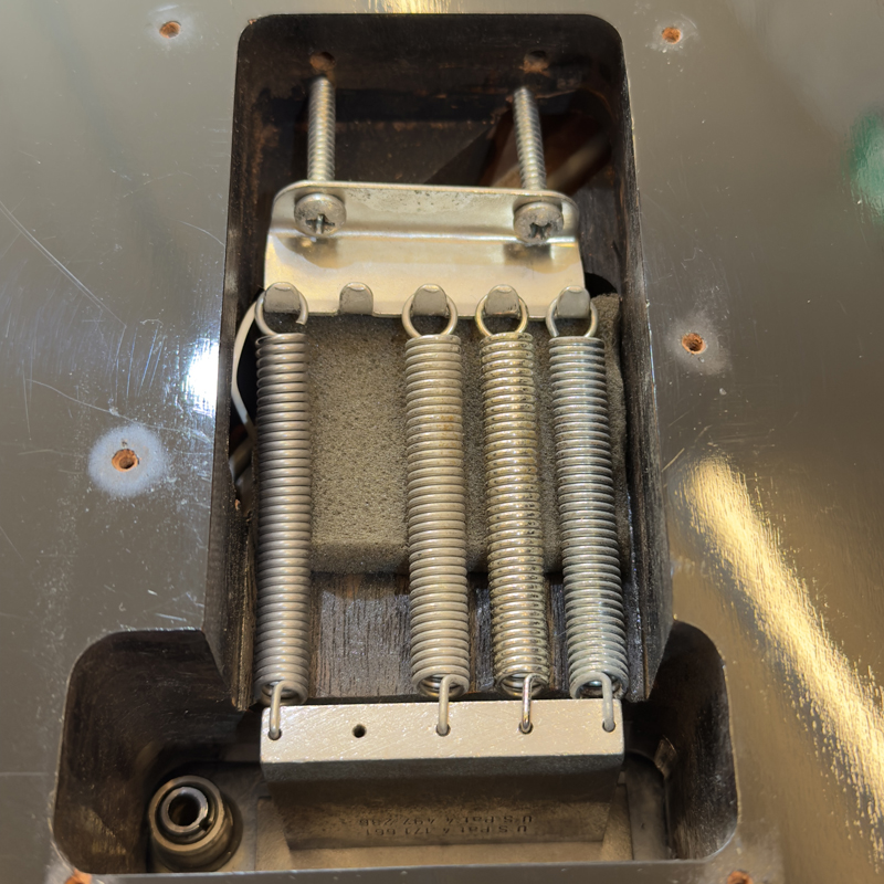 こちらは一度ネジを外して、表面上の割れであると確認しており、セットアップ後、トレモロをギュンギュン動かしても問題ありませんでした。