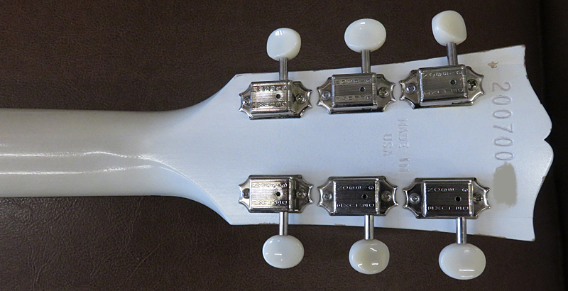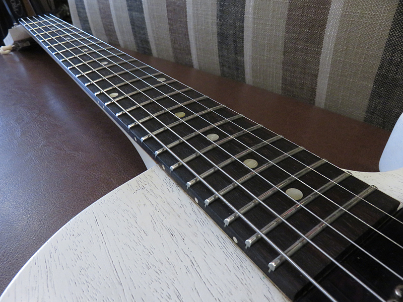 現在ネックはほぼストレート、トラスロッドは両方向に動作確認済、フレットは約75%位の残りでまだまだ高さがあります。使用弦:010-046。オリジナルではありませんがギブソンのギグバッグが付いています。(外装に破れあり)