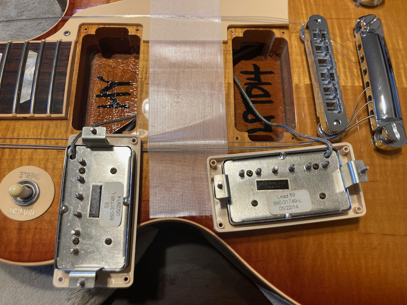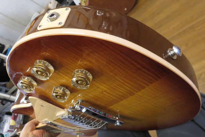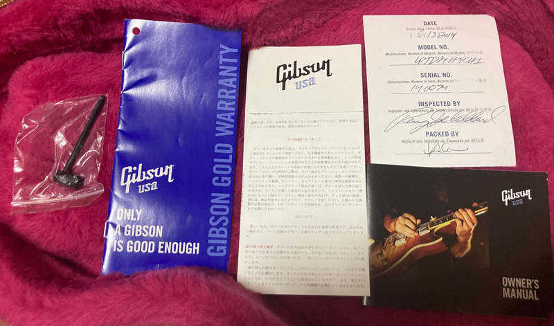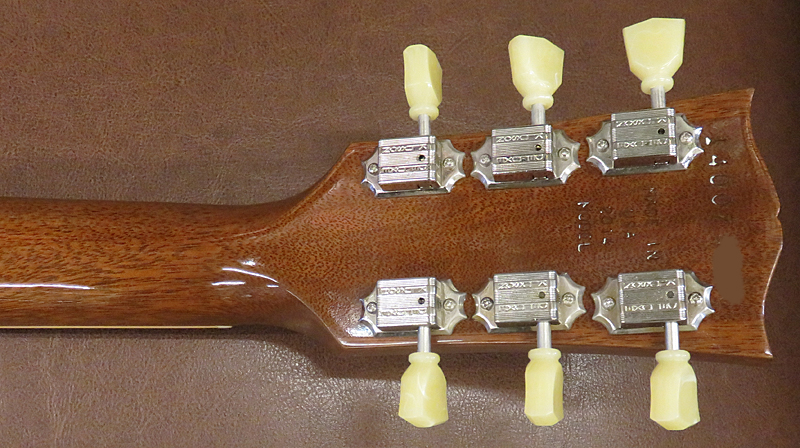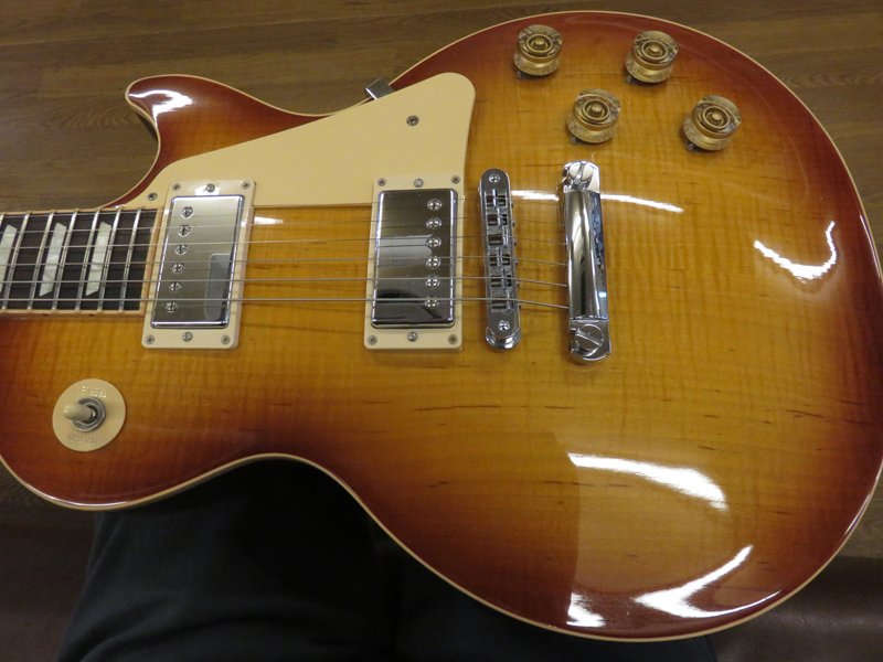 2014年製。ウェイト・リリーヴ・ホール無しのソリッドなボディを採用。ピックアップには59 トリビュートハムバッカーを搭載。ネック、ブリッジとも出力を抑えた歯切れのよいキャラクター。ボディトップには上品なフレイムメイプルを採用。12フレットにギブソン社創立120周年記念