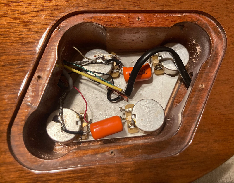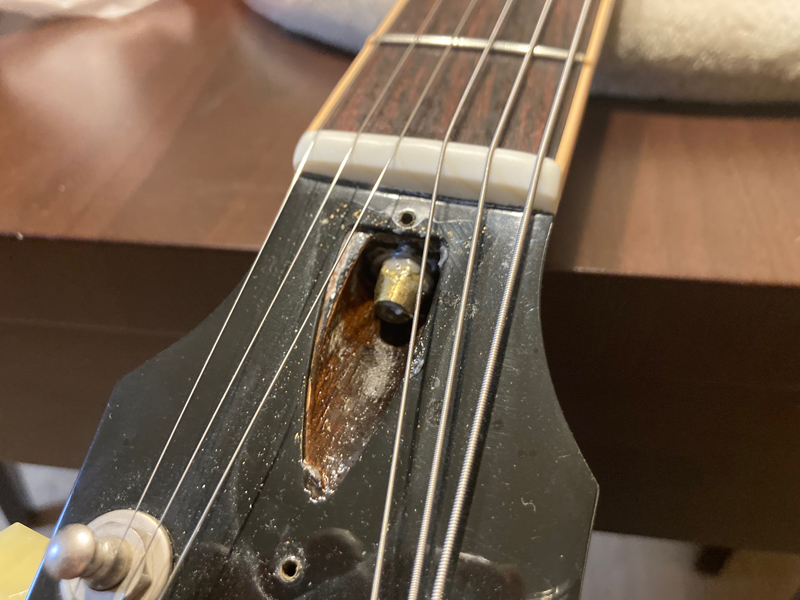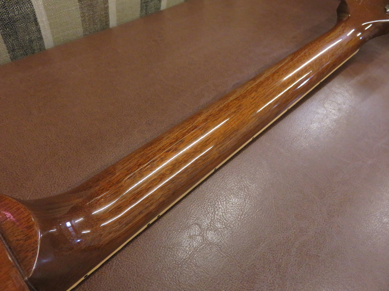 現在ネックはほぼストレート、トラスロッドはやや固めであと45度位締め付け可能、フレットは約80-85%位の残りです。使用弦:010-046。