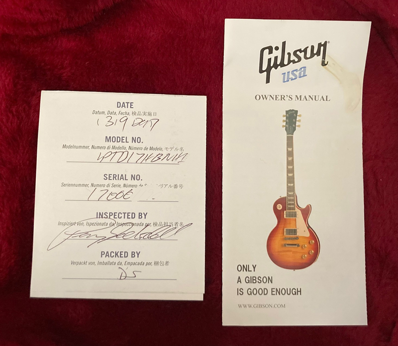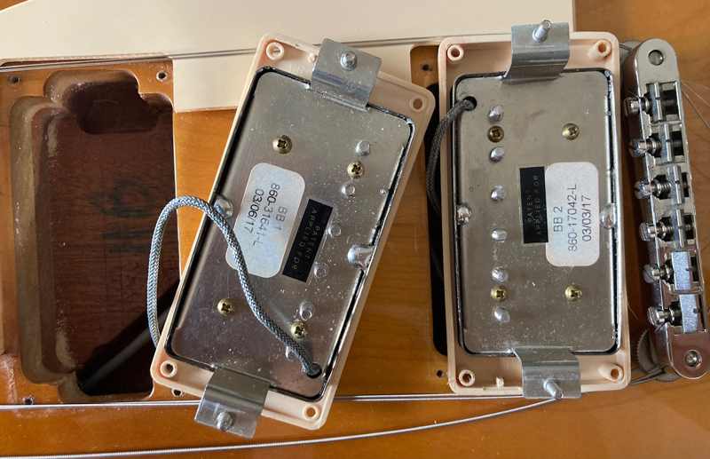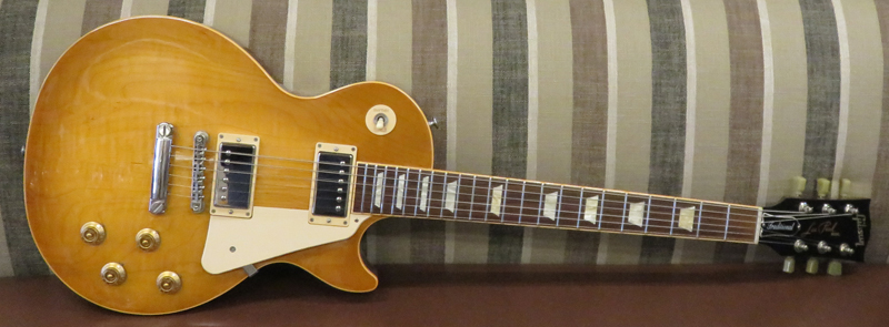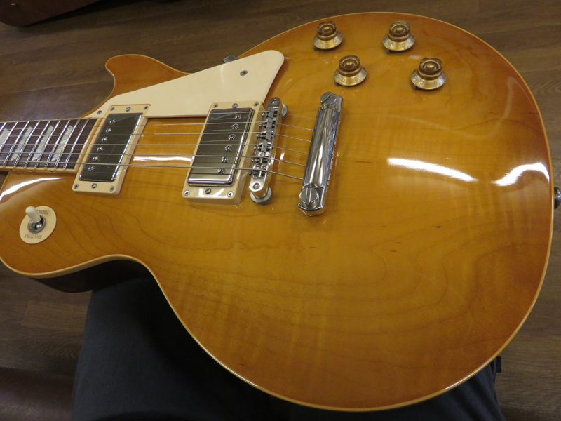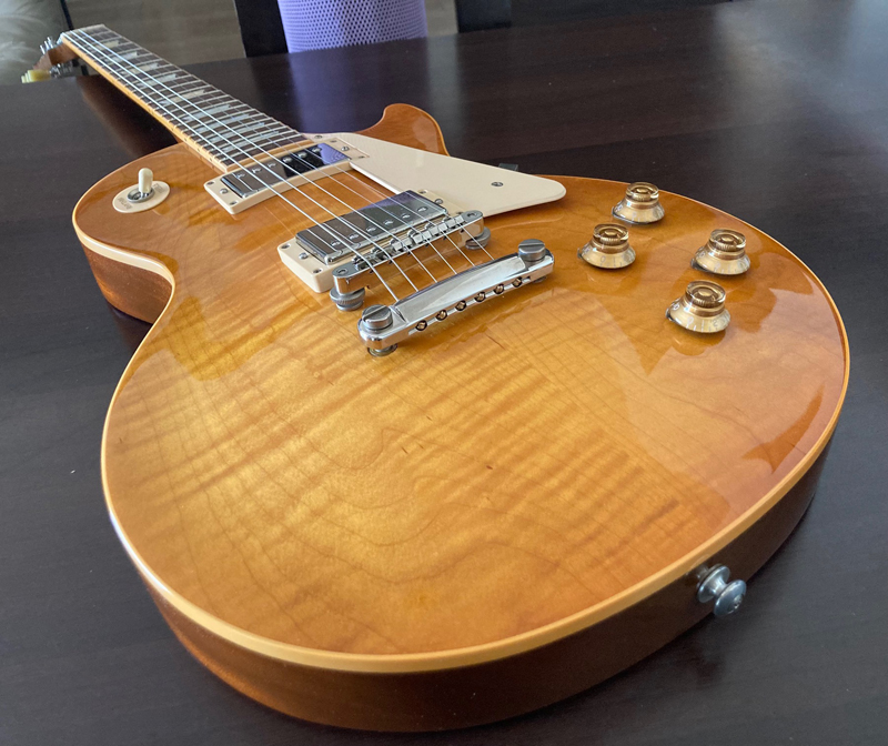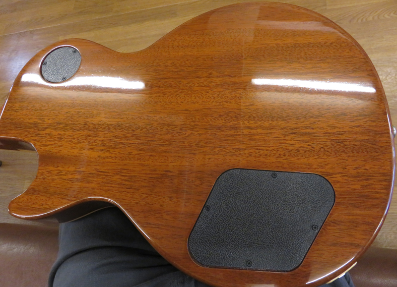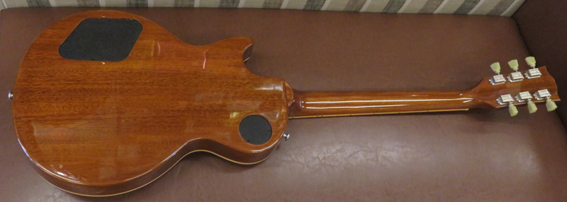 ウエイトリリーフ加工を施さない完全ソリッドボディ。ピックアップには歯切れのよいバーストバッカー#1,#2を搭載。電気系統は基盤を使わないワイヤリングを採用しビンテージを意識した仕様になっています。また、ボディトップのメイプルにはうっすらと上品なフレイムが見られます。