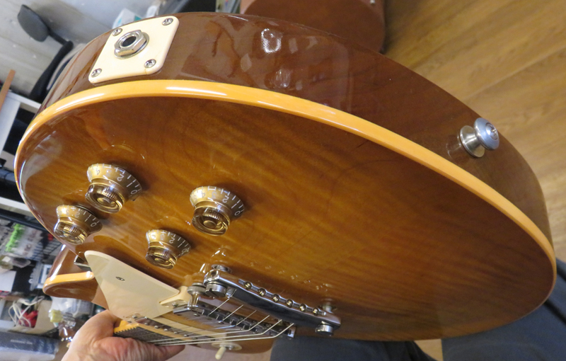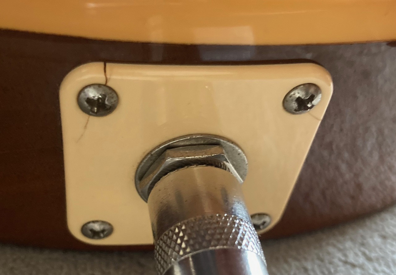 外見的には、ジャックプレートにひび割れ、ボディサイドにウチキズ、その他細かなスリキズ、ウチキズなどあります。