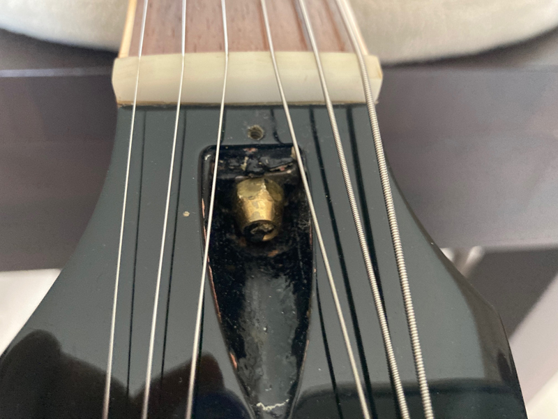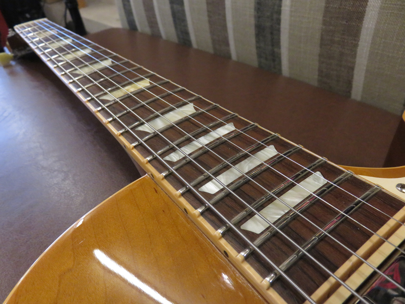 現在ネックはほぼストレート、トラスロッドは両方向に動作確認済、フレットは約90-95%位の残りです。使用弦: 010-046。