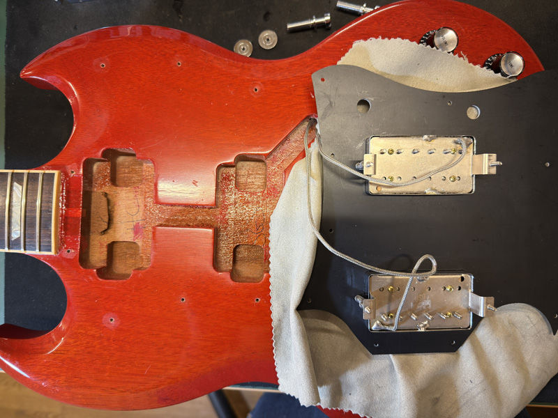 2000年製。ラージピックガードが象徴的な60年代後半スタイルのSG。