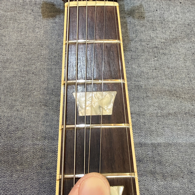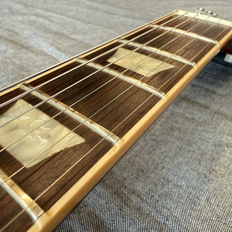 現行品のものとは一味違う、奥行き感のある素材の指版インレイや、