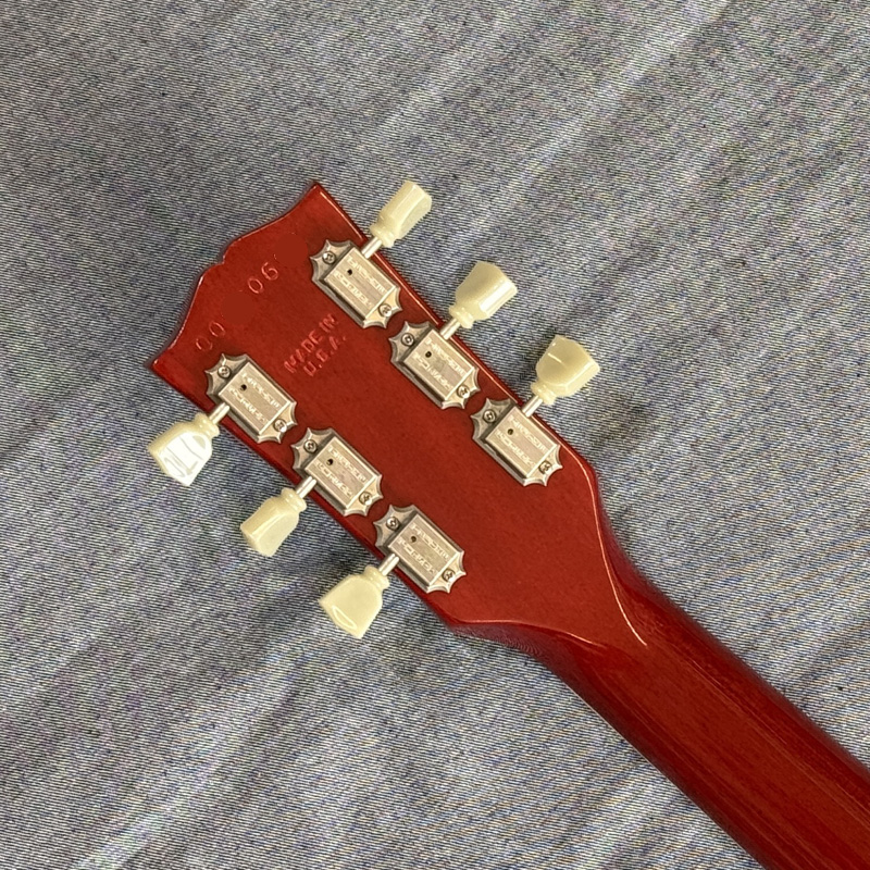 外観面では、リアPUカバーに少し大きめなおそらく金属による傷、ピックガードに演奏によるスクラッチ傷、その他全体に年代相応の使用感はありますが、大きなダメージはなく、比較的きれいな状態を保っています。