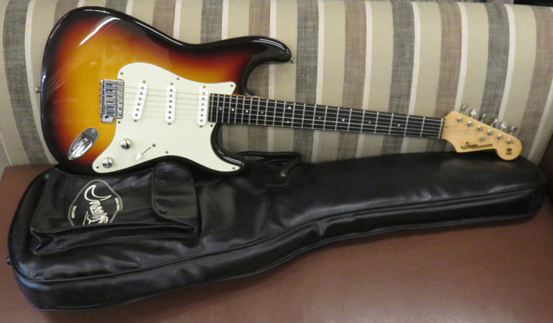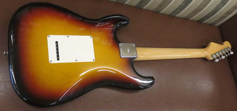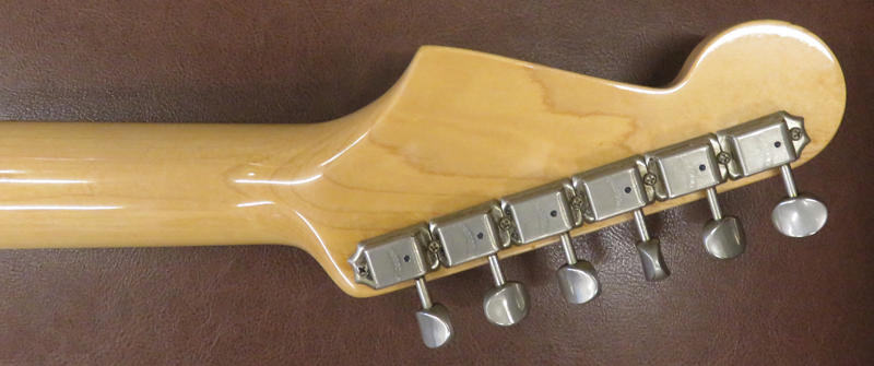 way Switch , Volume , Tone でToneポットpullでネックとブリッジピックアップをミックスすることができます。シリアルナンバーは5桁で"174xx"、年式は木部にデートがありませんので断定できませんが1980年代から1990年代(Moon
