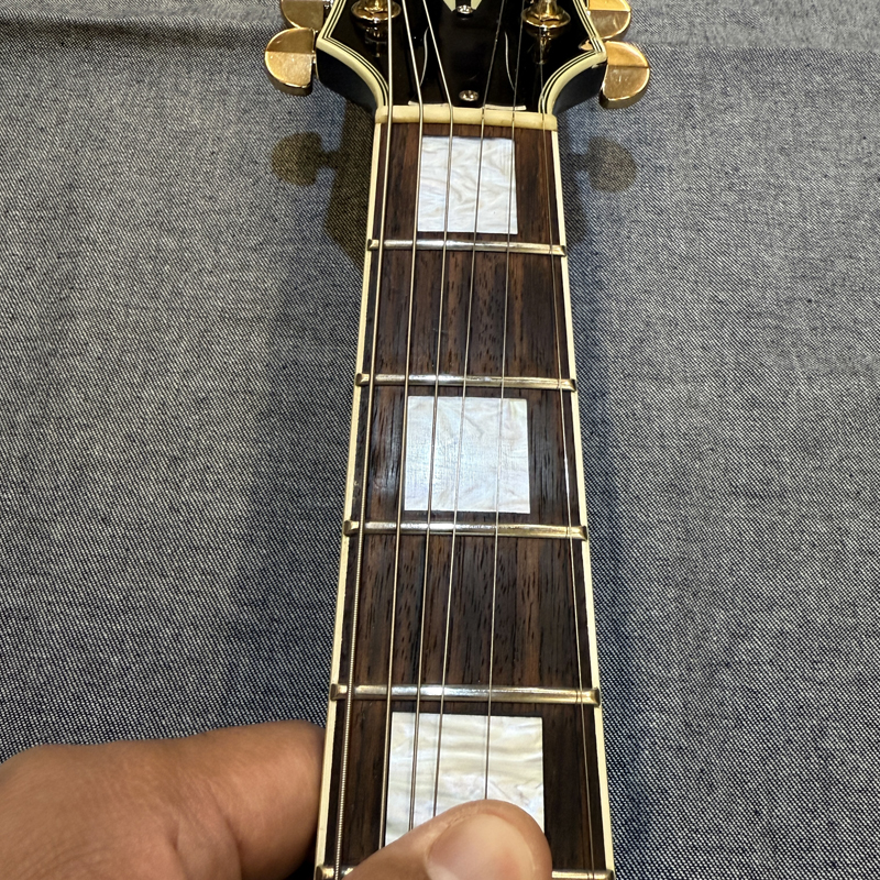 現在ネックはほぼストレート、トラスロッドは両方向に動作確認済、フレットは約75-80%位の残りです。使用弦:010-046。社外品汎用ハードケース付き。