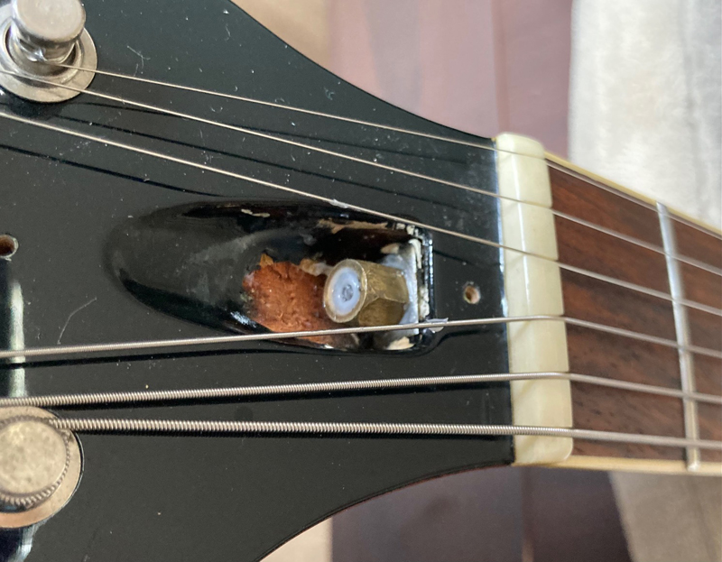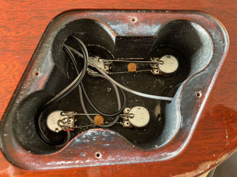 フレット擦り合わせ。Escussion x2 ,Pot x4 , Capacitor x2 , Jack , Jack plate 交換。 |