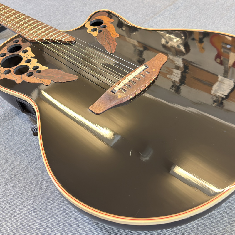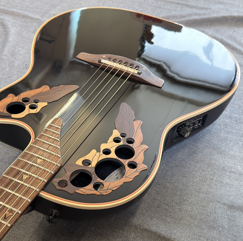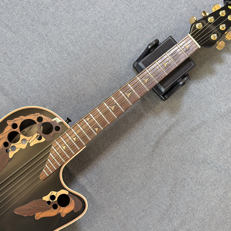 オベーション特有のマルチサウンドホールとカッタウェイを採用したUSA製エリート・シリーズ。
