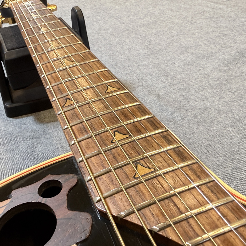 シリーズで最も薄いボディ設計により、生音はレスポンスが良く、エレキギターからの持ち替えも非常にスムーズな形状です。