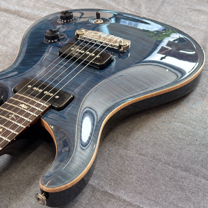 ”10TOP”グレードの木目に、深く落ち着いた海を思わせる”Whale Blue”カラーの一本です