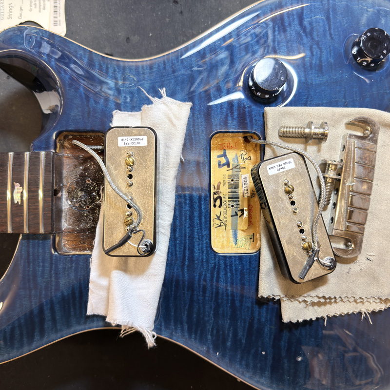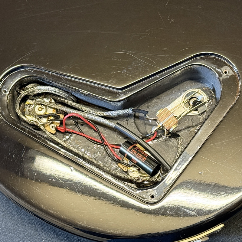 パーツ交換・修理歴は、ペグがGOTOH製のマグナムロックタイプに交換、コンデンサがBlackBeautyのリプロ品(0.022μ)に交換、PUカバーx2が交換されています。