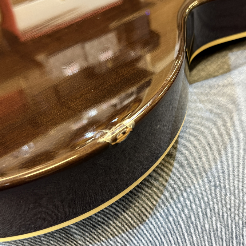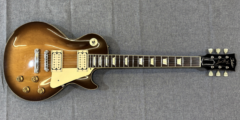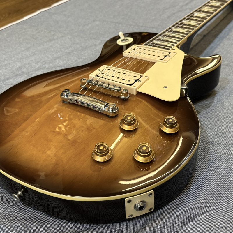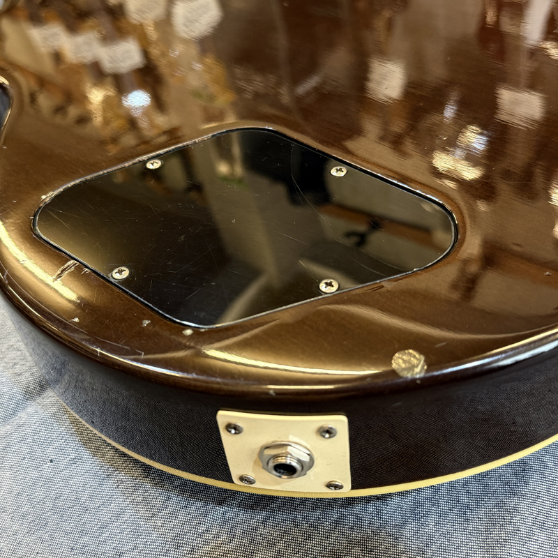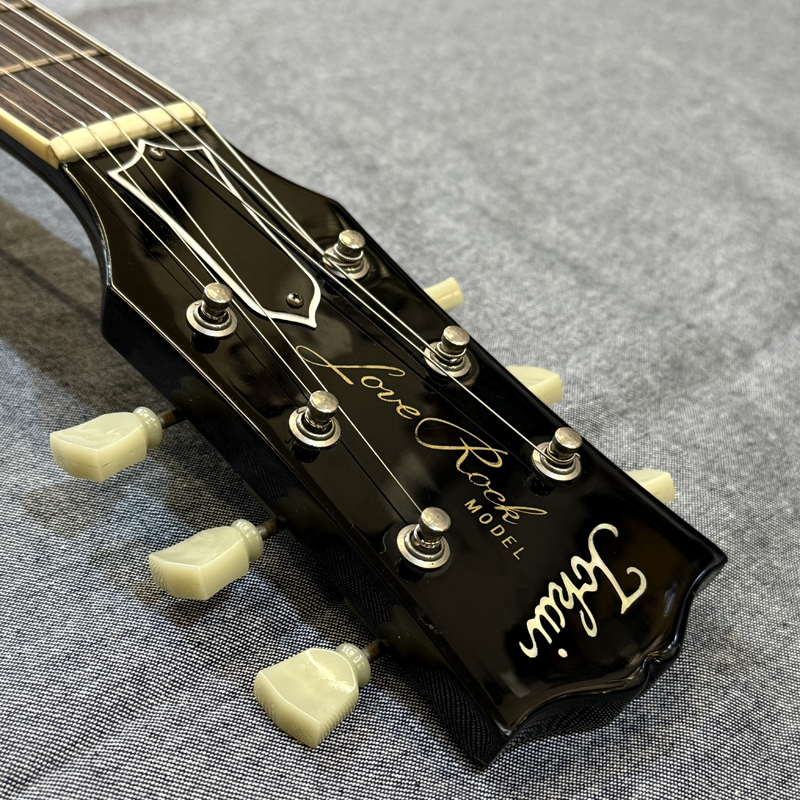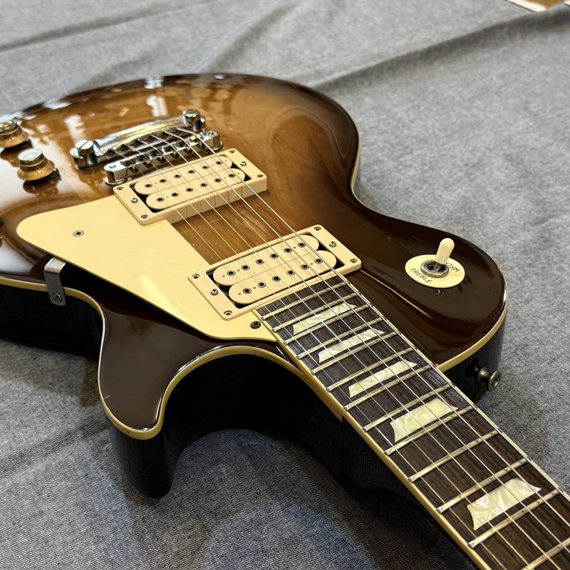 ピックアップはオリジナルのGotoオープンタイプが2基搭載。ディマジオのスーパーディストーションのようなルックスですが、ハイパワーではなく繊細なチャリっとしたサウンドが特徴です。ナット幅は約43ミリ、ローフレット近辺はやや薄めのネックグリップでハイポジションになると肉厚のしっかりとしたグリップになります。