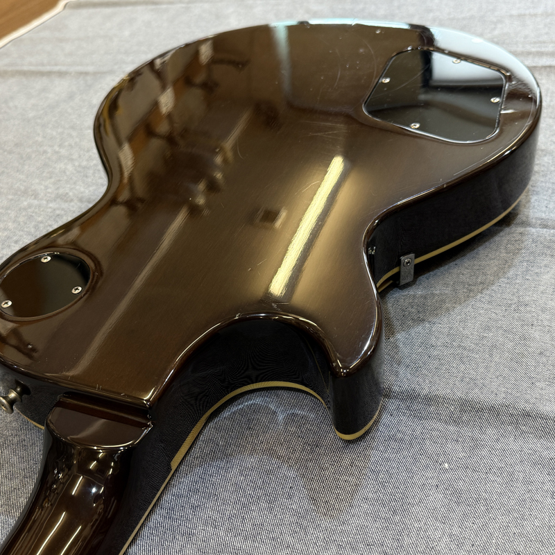 プレーンメイプル3pトップ、マホガニーバック、ローズウッド指板、マホガニーネックのレスポールコピーです。