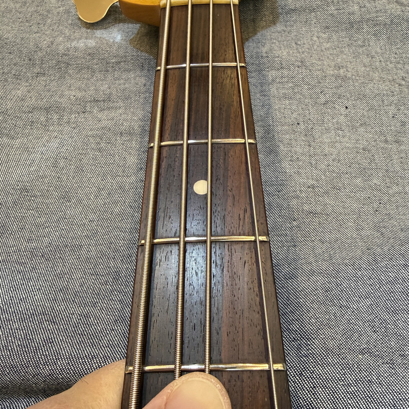 現在ネックはほぼストレート、トラスロッドは両方向に動作確認済、フレットは約85-90%位の残りです。