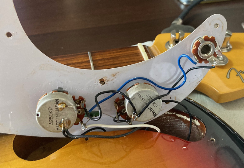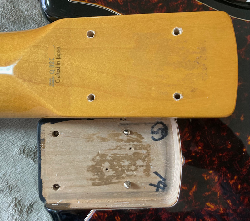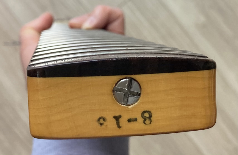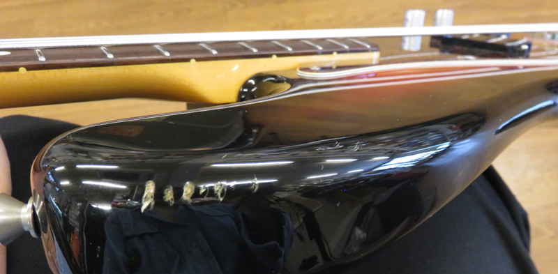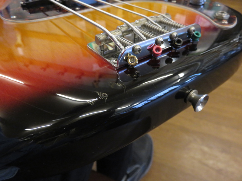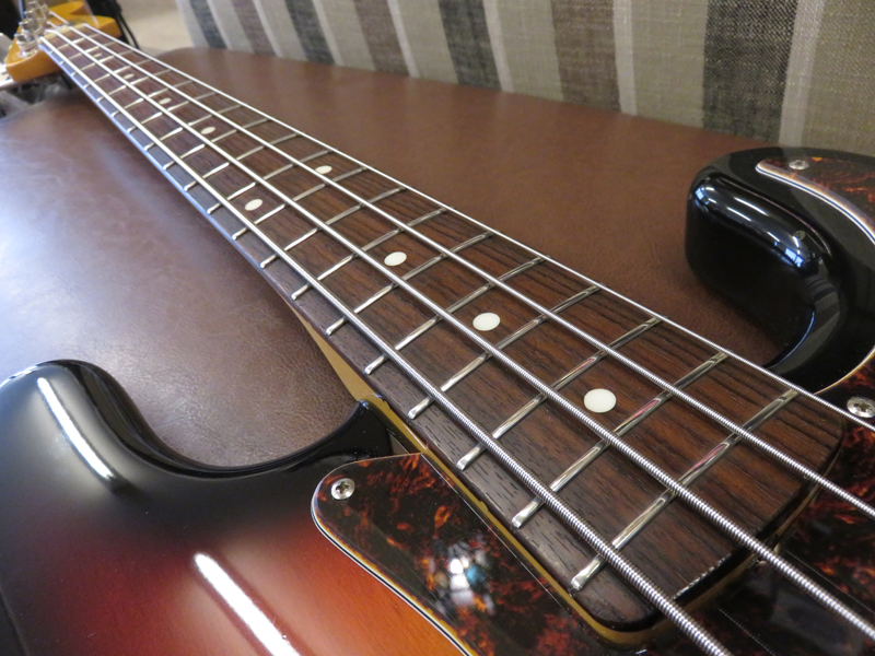 現在ネックはほぼストレート、トラスロッドは両方向に動作確認済、フレットは約80%位の残りです。使用弦:D'Addario 045-105 。