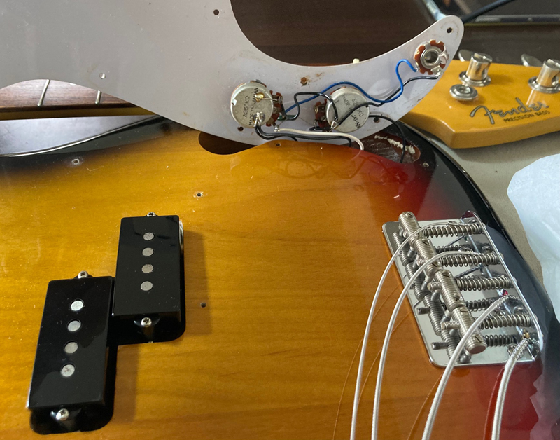 アルダーボディ、ローズウッド指板のプレシジョンベースのコピーモデル。